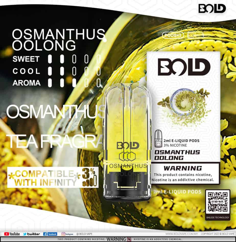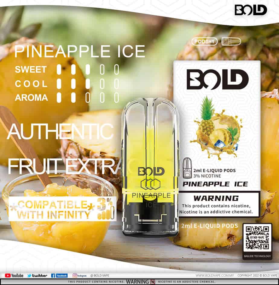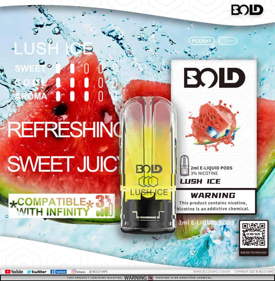 หัวพอตแบรนด์น้องใหม่ชื่อว่า BOLD เป็นแบรนด์น้องใหม่ที่กำลังมาแรงและได้รับความนิยมเป็นอย่างมาก หัวพอต BOLD มีกลิ่นใหม่ๆให้ได้เลือกเยอะมาก หัวพอต BOLD ผลิตจากวัสดุเรซินอะครีลิคใสคริสตัลคุณภาพสูงสามารถรักษาความบริสุทธิ์และอายุน้ำยาได้นานมาก ในหัวพอต BOLD ยังมีเทคโนโลยีที่สุดยอดอีกหนึ่งอย่างการดูดซับ MY98 เป็นเทคโนโลยีที่มีแค่ในหัวหัวพอต BOLD เท่านั้น เทคโนโลยี MY98 ดียังไง MY98 จะช่วยในเรื่องป้องการรั่วซึมเวลาที่ใช้งานและช่วยดูดซับการควบแน่นทั้งหมด นอกจากเทคโนโลยีที่สุดยอดแล้ว หัวพอต BOLD ได้มีการปรับปรุงเรื่องรสชาติของน้ำยาและคิดกลิ่นใหม่ๆออกมาอยู่ตลอด วัสดุด้านในเป็นขดลวดเซรามิกช่วยในเรื่องให้ความร้านได้เร็วและทำให้กลิ่นของน้ำยามาเต็มมาขึ้นโดยที่ไม่ต้องใช้แรงสูบเยอะ หัวพอต BOLD มีขนาดความจุน้ำอิเล็กทรอนิก 2 มล.และมีรสชาติให้เลือกเยอะถึง 25 กลิ่นรายละเอียดกลิ่น หัวพอต BOLD INFINITE