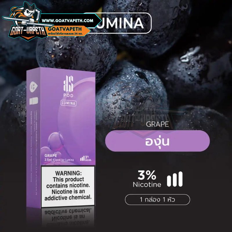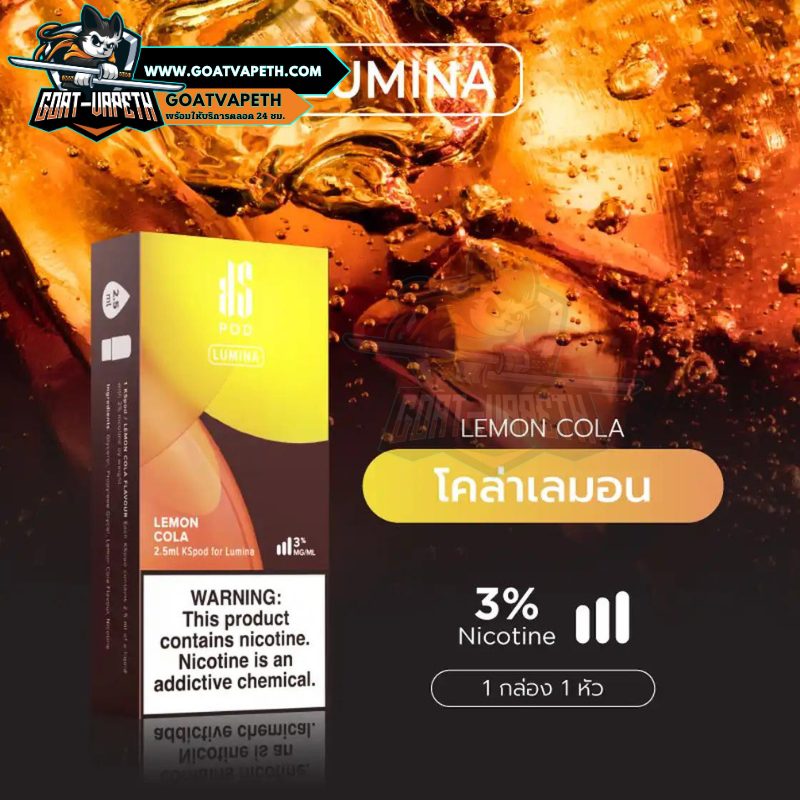 หัวพอต KS LUMINA เป็นหัวพอตสำเร็จรูปรุ่นใหม่ล่าสุดจากแบรนด์ KS ที่มาพร้อมกับกลิ่นที่ยอดนิยมที่สุดในตอนนี้ มาพร้อมกับนิโคตินคุณภาพที่เข้มข้นมากให้มาถึง 3%-5% เหมาะสำหรับใครที่ชอบนิโคตินเยอะเป็นพิเศษ ปริมาตรความจุ 2.5ml เยอะเช่นเดิมตามสไตล์ของแบรนด์ KS และยิ่งไปกว่านั้นรสชาติต้องยกให้เป็นอันดับ 1 เลยก็ว่าได้ หัว หัวพอต KS LUMINA กลิ่นชัดตรงปกต้องจัด