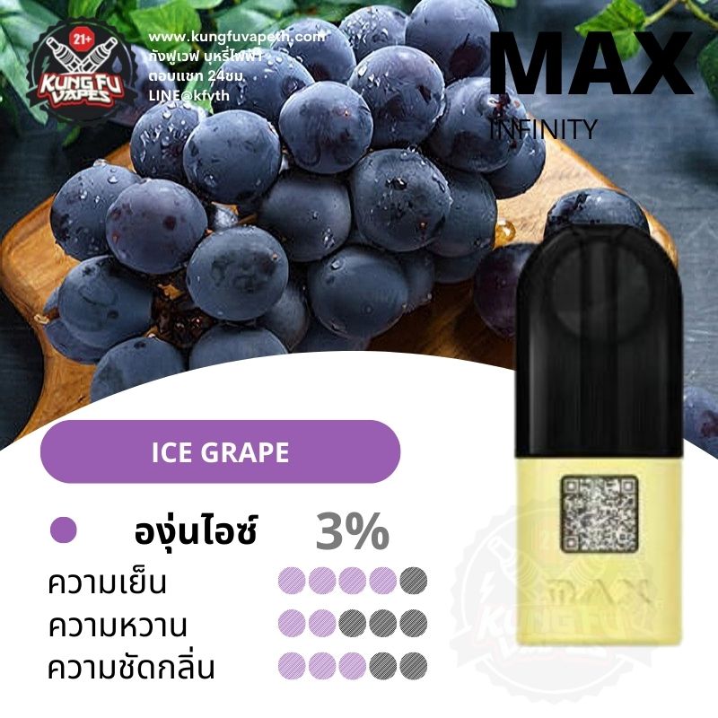 หัวพอต MAX INFINITY เป็นแบรนด์ที่ได้รับความนิยมเป็นอย่างมากในเรื่องของหัวพอตสำเร็จรูปในเพราะหัวพอตแต่ละกลิ่นมีความหอมวานอร่อยมีครบทุกรสชาติและยิ่งไปกว่านั้นทาง MAX ยังผลิตหัวพอตกลิ่นใหม่ๆออกมาอย่างต่อเนื่องเพื่อทำให้ไม่รู็สึกไม่จำเจ หัวพอต MAX INFINITY มีนิโคตินที่มีคุณภาพเป็นอันตรายน้อยกว่าบุหรี่เยอะมากมีความจุน้ำยา 2 มล. ร้านของเราได้รวบรวมทุกกลิ่นเช่น ผลไม้ เครื่องดื่ม ขนมให้เลือกกันแบบเต็มทีรายละเอียดกลิ่น หัวพอต MAX INFINITY