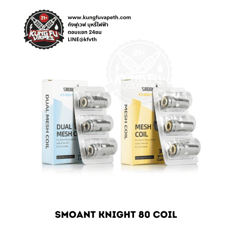 คอยล์ SMOANT KNIGHT 0.3/0.4/0.6 โอห์ม ใช้กับเครื่อง SMOANT KNIGHT 80W ใช้ได้กับน้ำยาซอลและน้ำยาฟรีเบส คอยล์รีดน้ำยาได้สุดมาก เวลาสูบโล่งควันยอะให้กลิ่นชัดและฟิวสูบที่ดีมาก 1 กล่องมีคอยล์ 3 ชิ้น คอยล์ผลิตจากวัสดุกรดอย่างดีปลอดภัยต่อการใช้งาน ทางร้านจำหน่ายคอยล์แท้ 100%