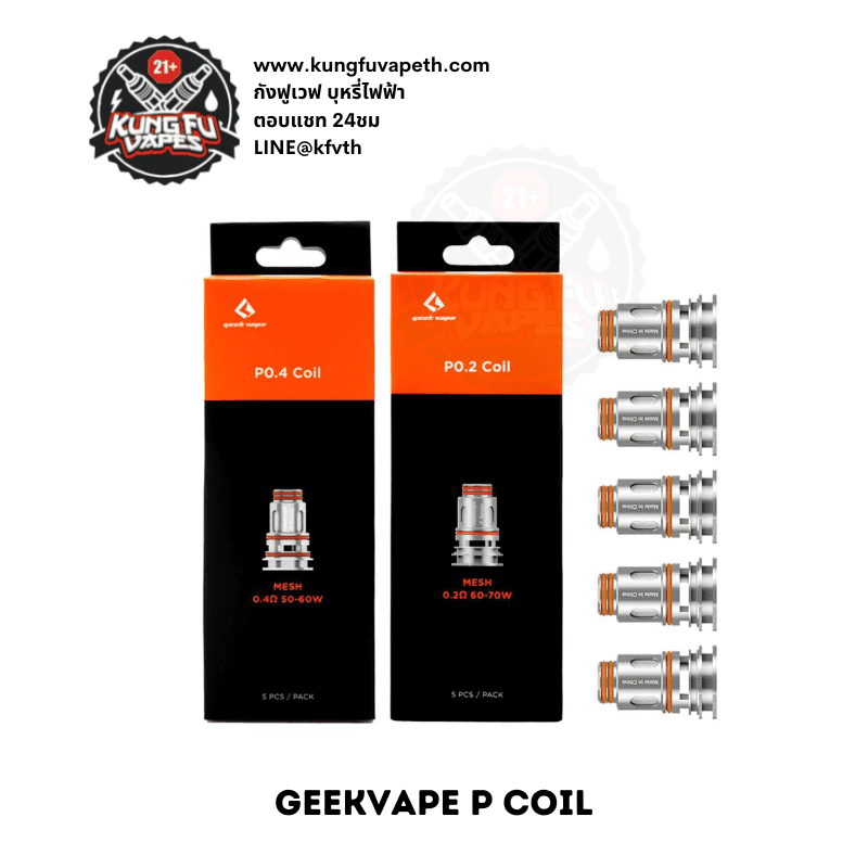 คอยล์ GEEKVAPE P 0.2/0.4 โอห์ม คอยล์แต่ละค่าโอห์มให้ฟิวและรสชาติที่ต่างกันคอยล์ใช้ได้กับน้ำยาฟรีเบส คอยล์รีดน้ำยาได้สุดมาก เวลาสูบโล่งควันยอะให้กลิ่นชัดและฟิวสูบที่ดีมาก 1 กล่องมีคอยล์ 5 ชิ้น คอยล์ผลิตจากวัสดุกรดอย่างดีปลอดภัยต่อการใช้งาน ทางร้านจำหน่ายคอยล์แท้ 100%