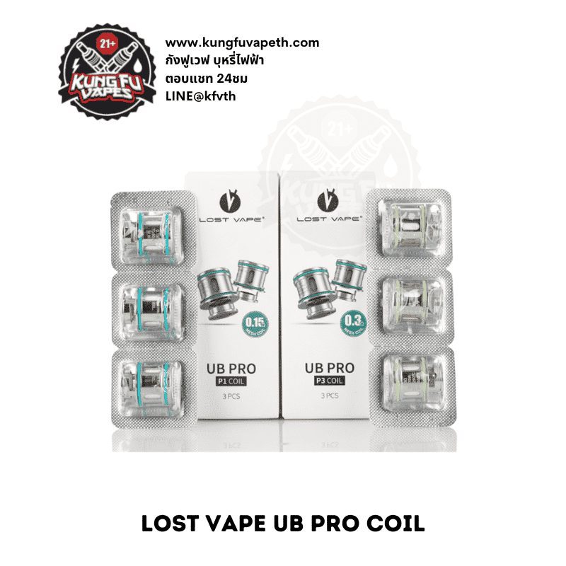 คอยล์ LOST VAPE UB PRO COIL 0.15/0.3 โอห์ม คอยล์แต่ละค่าโอห์มให้ฟิวและรสชาติที่ต่างกันคอยล์ใช้ได้กับน้ำยาฟรีเบส รีดน้ำยาได้สุดมาก เวลาสูบโล่งควันยอะให้กลิ่นชัดและฟิวสูบที่ดีมาก 1 กล่องมีคอยล์ 3 ชิ้น คอยล์ผลิตจากวัสดุกรดอย่างดีปลอดภัยต่อการใช้งาน ทางร้านจำหน่ายคอยล์แท้ 100%