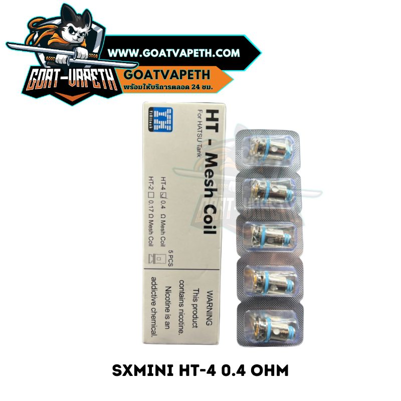 คอยล์ SXMINI HT-4 0.4โอห์ม เป็นคอยล์จากแบรนด์ SXmini สามารถใช้ได้กับแทงค์ SXmini Hatsu Tank ตัวคอยล์เป็นลวดแบบ Mesh coil รับรองความสนุก คอยล์ SXMINI HT-4 คุณภาพของแท้ 100%