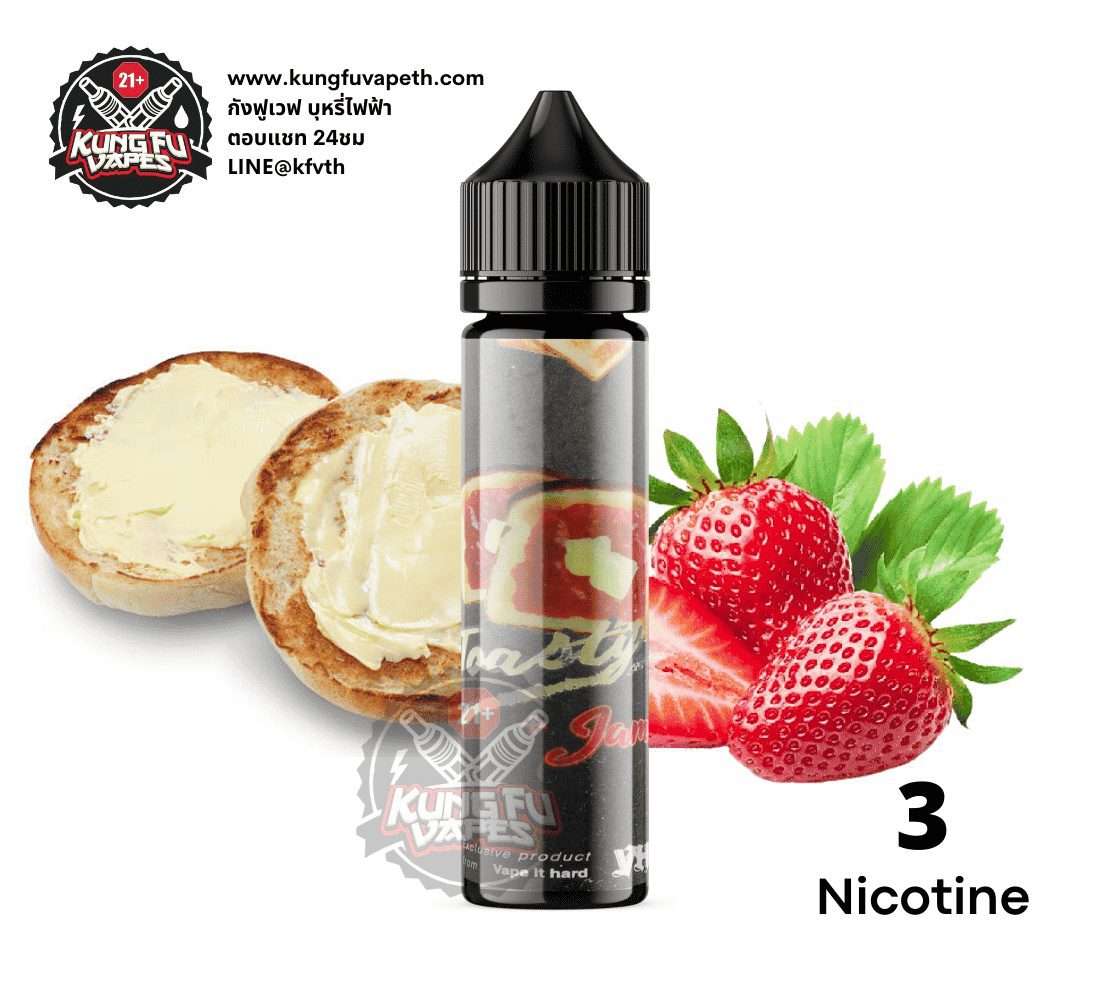 น้ำยาฟรีเบส โทสตี้แจม Toasty Jam กลิ่นขนมปังปิ้งบนเตาร้อนๆทาแยมสตรอเบอร์รี่ราดบนขนมปังที่สุดของความหอมหวาน โครตละมุน ให้ฟิวเหมือนอบอุ่นๆออกมาจากเตา รสชาติหอมหวานละมุนลิ้นสุดๆ