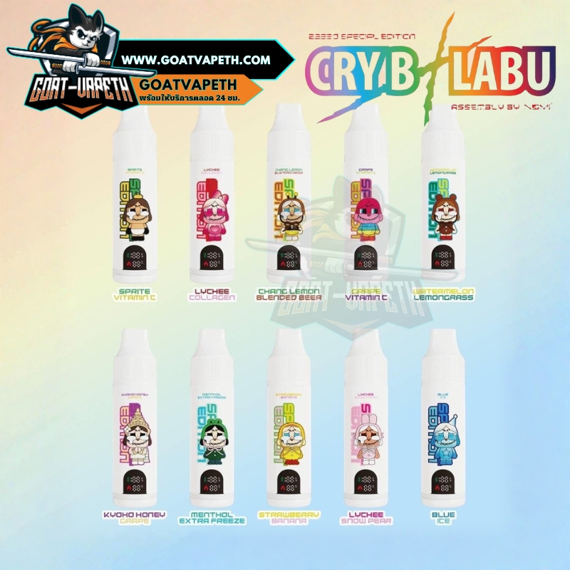 ในส่วนของกลิ่นที่มากับCRYB LABU 22K จะมีให้เพื่อนๆเลือกได้มากถึง 10รสชาติ แต่ละรสชาติของทางแบรนด์ LABU ทำออกมาได้ยอดเยี่ยมมาก คือมีแต่กลิ่นที่ได้รับความนิยมทั้งนั้นเลย สำหรับใครที่เป็นสาวกจะรู้กันดีอยู่แล้วว่าเรื่องคุณภาพของน้ำยาต้องยกให้เค้าจริงๆ หอมอร่อยทุกกลิ่น มากับสไตล์ผลไม้สุดแสนอร่อยหอมหวาน ซึ่ง CRYB LABU 22330ตำ มาพร้อมกับ นิโคติน 3mg เหมาะสำหรับหนักสูบมือใหม่และนักสูบมือโปรสุดๆ