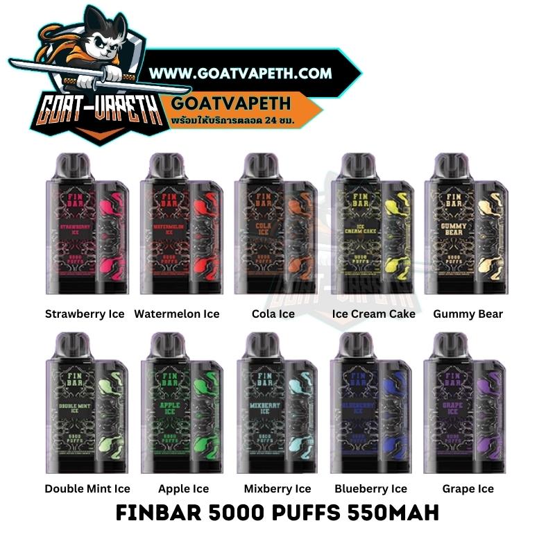 พอตใช้แล้วทิ้งจากแบรนด์ FINBAR สู่ทางเลือกใหม่สำหรับผู้ที่มีความต้องการที่เปลี่ยนแนวการสูบใหม่ FINBAR 5000 รุ่นใหม่ล่าสุดสูบได้ทั้งหมด 5000 คำ ขดลวดตาข่าย 1.1โอห์ม ช่วยทำให้รสชาติน้ำยาหอมหวานทำความร้อนได้เร็ว มาพร้อมกับแบตเตอรี่ในตัวขนาด 550mAh ที่สามารถชาร์จแบตเตอรี่ได้ นิโคติน 30mg มีให้เลือกมากถึง 10 รสชาติ