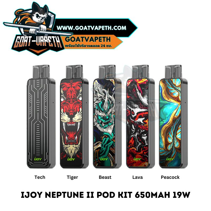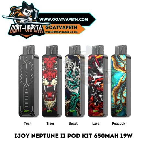 IJOY NEPTUNE II 19W POD KIT เป็นพอตตัวใหม่ล่าสุดแบรนด์ Ijoy ได้ถูกพัฒนามาจาก IJOY NEPTUNE รุ่นก่อนหน้านี้ เป็นระบบสูบ MTL และ DL IJOY NEPTUNE II ได้ถูกพัฒนาชิปเซ็ต Univ pro มีหลากหลายโหมดให้เลือก Bypass ในกล่องจะมีคอยล์พร้อมแทงค์สามารถจุน้ำยาได้ถึง 2มล. ตัวเครื่องเข้ากันได้กับเครื่อง IJOY NEPTUNE II คอยล์ได้ถูกอัพเกรดอย่างดีโดยจะแทนที่ด้วยการติดตั้งแบบ plug-n-play และจะสร้างควัน มีรสชาติชั้นยอดและมีคุณภาพสูง มันเชื่อมต่อกับแม่เหล็ก IJOY Neptune 2 เพื่อตอบสนองในการสูบให้สนุกยิ่งกวว่าเดิม แบตเตอรี่ภายใน 650mAh สามารถชาร์จได้อย่างรวดเร็ว สร้างจาก Zinc Alloy & PCTG Material ทำให้ทั้งความทนทานและน้ำหนักเบา
