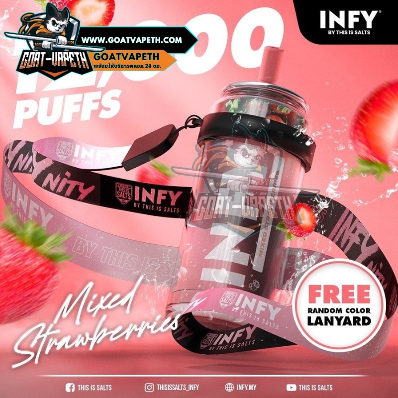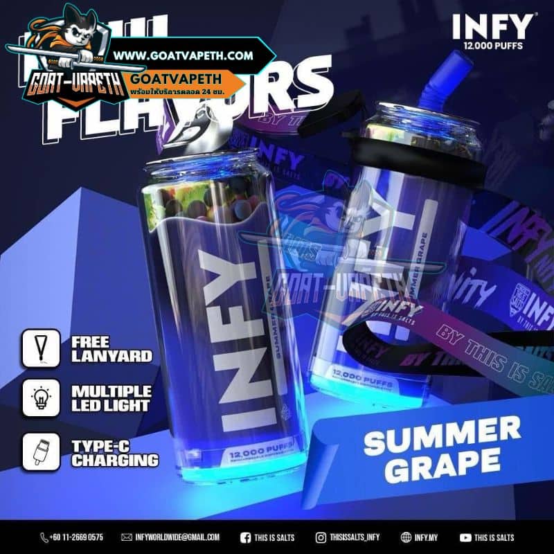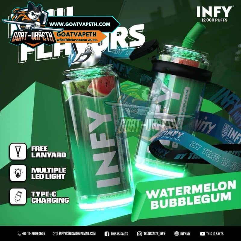 INFY 12000 PUFFS เป็นพอตใช้แล้วทิ้งตัวใหม่ล่าสุดจากแบรนด์ INFY สู่ทางเลือกใหม่สำหรับนักสูบหน้าใหม่และหนักสูบมือโปรที่ต้องการเปลี่ยนฟิวในการสูบ เราของแนะนำINFY 12000 คำ รุ่นใหม่ล่าสุด สูบได้ทั้งหมด 12000 คำ เป็นแบบขดลวด MESH COIL เป็นลวดที่จะช่วยทำให้รสชาติน้ำยาหอมหวานอร่อยทุกคำและทำความร้อนได้เร็วมากขึ้น ยิ่งไปกว่านั้นยังทำให้ควันเยอะอีกด้วยพอต INFY 12K มาพร้อมกับแบตเตอรี่ในตัวขนาด 600mAh ที่สามารถชาร์จแบตเตอรี่ได้ นิโคติน 30mg มีให้เลือกมากถึง 20 รสชาติ และความพิเศษของตัวใช้แล้วทิ้ง INFY 12000มาพร้อมกับปริมาณน้ำยาที่เยอะมากถึง ไฟ LED ที่จะคอยแจ้งเตือนปริมาณแบตเตอรี่