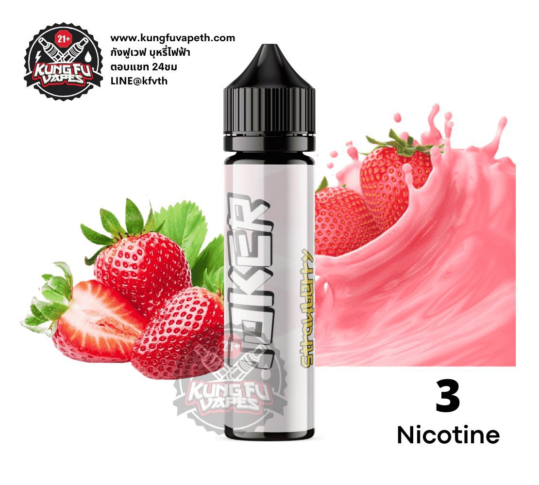 โจ็กเกอร์ สตรอเบอร์รี่มิลค์เชค กลิ่นนมสตรอเบอร์รี่ให้รสชาติหวานแบบอร่อยมากหอมติดปาก กลิ่นที่เป็นเอกลักษณ์สุดๆ น้ำยายอดนิยมต้องลอง