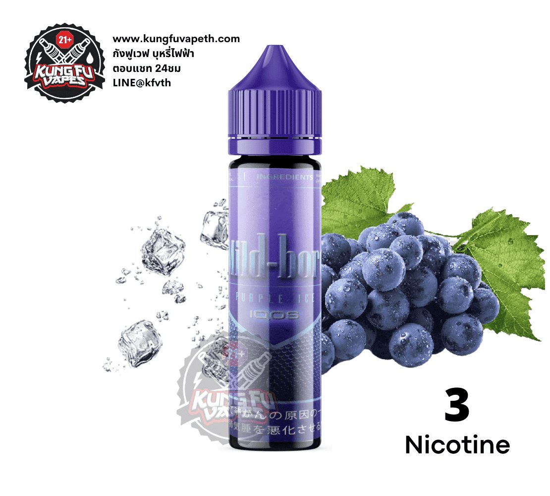 มายบลู เพอร์เพิลไอซ์ไอคอส กลิ่นบุหรี่องุ่นไอคอสเย็น สายบุหรี่ตัวจริงไม่ควรพลาด เหมือนบุหรี่ไอคอสให้รสชาติหอมหวานเย็นครบจบในขวดเดียว