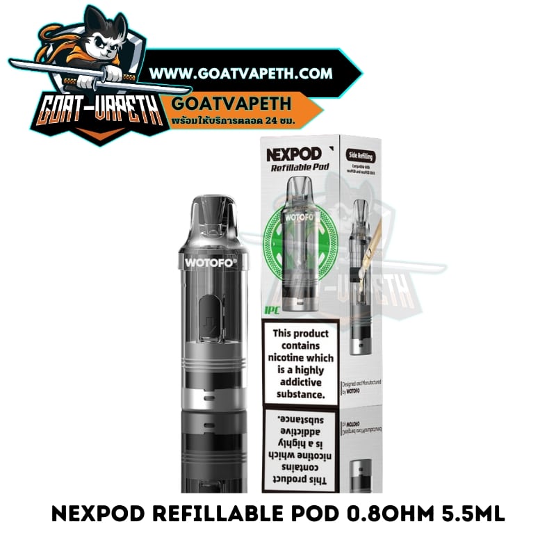 หัวเติม NEXPOD REFILLABLE POD เป็นหัวพอตเติมสำเร็จแบบใหม่ของแบรนด์ WOTOFO สามารถจุน้ำยาได้มาถึง 5.5ml มาพร้อมกับคอยล์แบบ Nexmesh หรือลวดตาข่ายค่าโอห์ม 0.8โอห์มทำให้รีดกลิ่นและรสชาติของน้ำยาได้ออกมาได้อย่างชัดเจนและที่สำคัญลวดแบบตาข่ายนำความลวดได้ดีและทำให้การใช้งานมีอยุได้ยาวนานกว่าปกติ