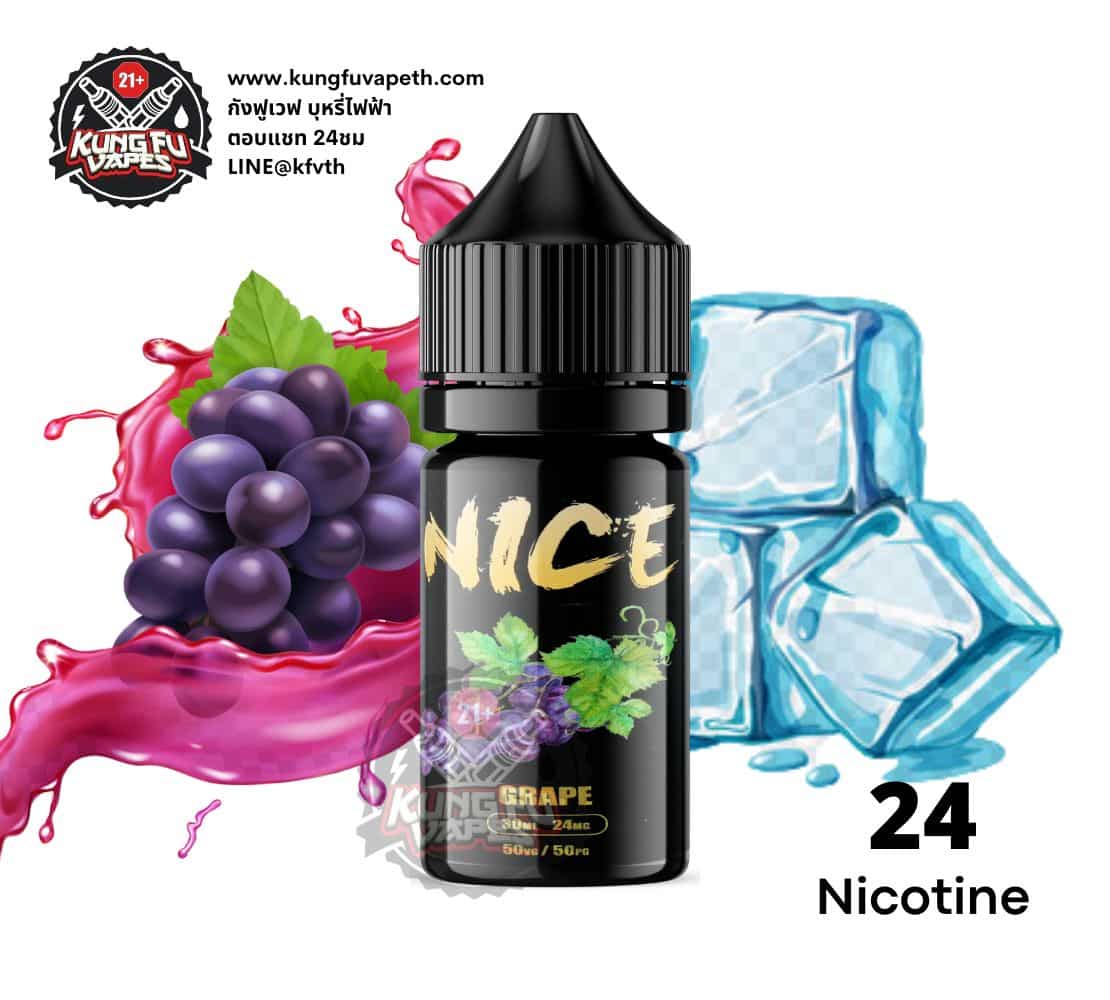 - NICE GRAPE SALTNIC กลิ่นองุ่น ไนท์ดำองุ่นมีครบทุกรสชาติทั้งหอมหวานเย็นกำลังดี เป็นน้ำยาที่สูบแล้วละมุนคอมาก ไม่รู้สึกบาดคอเลยสักนิดมาในรูปแบบซอลนิค