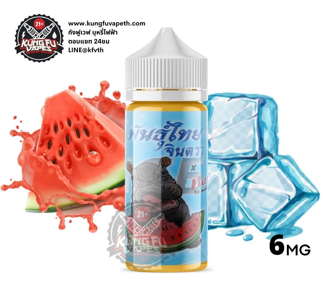 PHUNTHAI ICE WATERMELON พันธุ์ไทยจินตราไอซ์ กลิ่นแตงโมไอซ์หอมหวานกำลังดีสูบง่ายสบายคอไม่แน่นจนเกินไป เป็นแบรนด์น้ำยาที่ใครหลายๆคนชื่นชอบ รับรองไม่ผิดหวังอย่างแน่นอน