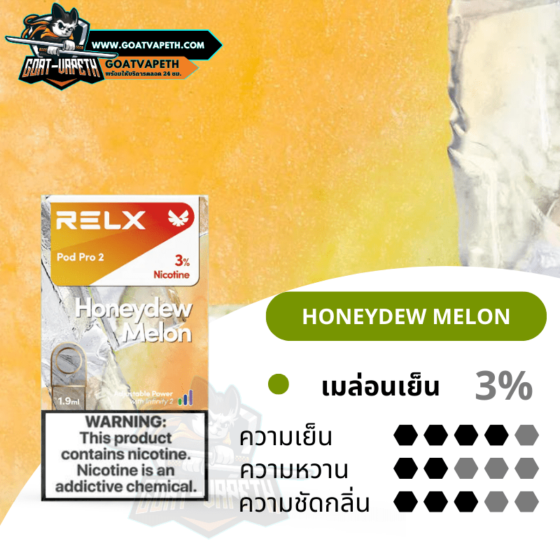 ติดต่อสอบถามแอดมิน คลิกข้อมูลจำเพราะ หัว RELX POD PRO 2 HONEYDEW MELON