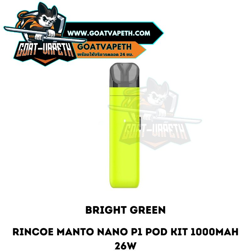 RINCOE MANTO NANO P1 POD เป็นพอตไฟฟ้าจากแบรนด์ RINCOE ในรุ่น MANTO NANO P1 ได้ทำการออกสีใหม่ทั้งหมด 7 สี มีให้เลือกหลากหลายแบบ MANTO NANO P1 มาพร้อมกับแบตเตอรี่ในตัวขนาดใหญ่ 1000mAh สามารถยิงไฟ 26W พอตไฟฟ้า MANTO NANO P1 สามารถใช้กับน้ำยาฟรีเบสและซอลนิคได้ ใช้งานร่วมกับคอยล์ MANTO NANO Series ได้ทุกค่าโอห์ม ที่สำคัญ MANTO NANO P1 มาพร้อมกับที่ปรับอากาศได้อย่างอิสระ