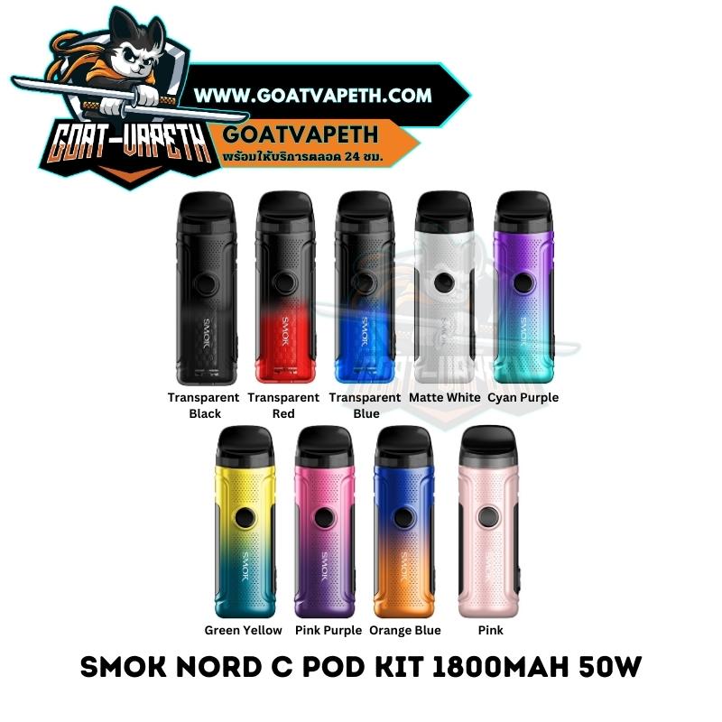 SMOK NORD C POD KIT เป็นพอตไฟฟ้าขนาดเล็กจากแบรนด์ Smok ตัวเครื่อง Nord C เป็นรุ่นใหม่ล่าสุดในซีรีย์ Nord เป็นแบตเตอรี่ภายในขนาด 1800mAh ปรับวัตต์ได้ตั้งแต่ 5-50W ตัวแทงค์เปล่าขนาด 4.5 มล. สามารถใช้ร่วมกับคอยล์ซีรีย์ RPM 2 ได้ทุกค่าโอห์ม มาพร้อมหน้าจอ OLED ขนาด 0.69 นิ้ว