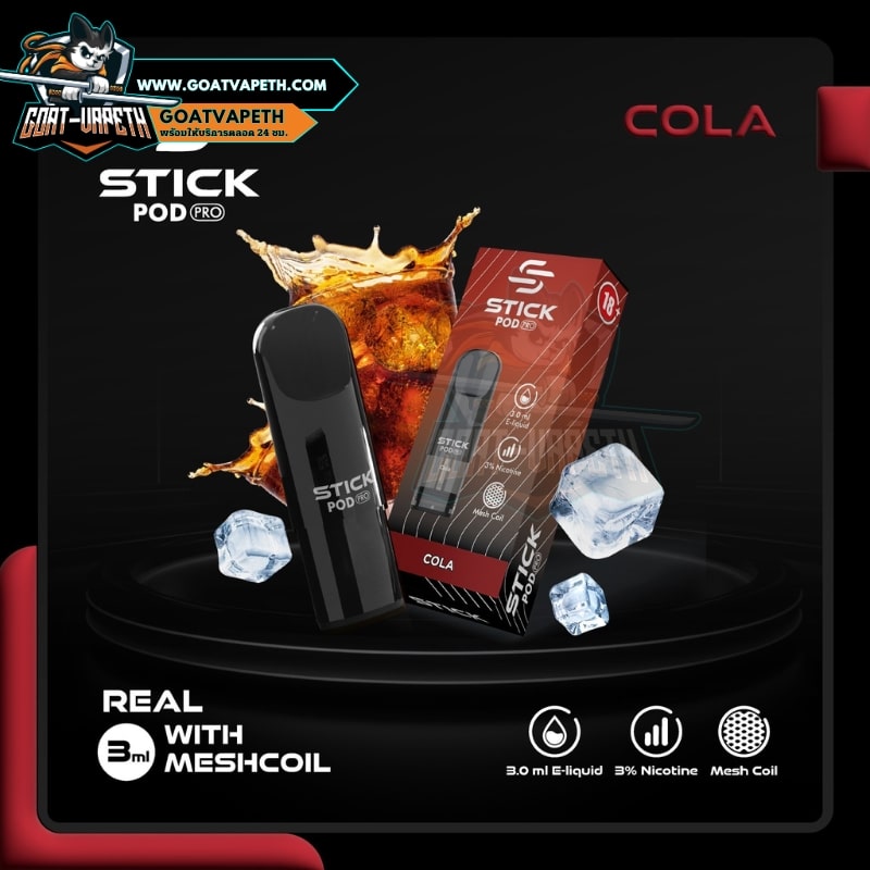 กลิ่นโคล่าหอมหวานเย็นชื่นใจกำลังดีสูบง่ายสบายๆสำหรับใครที่กำลังมองหาทางเลือกใหม่ๆในการสูบหรือต้องการอยากจะเปลี่ยนแนวรสชาติ หัวแบรนด์ STICK PRO ถือว่าตอบโจทย์ นิโคตินไม่แรงมากสูบง่ายสายชิวห้ามพลาดกลิ่นตรงปก