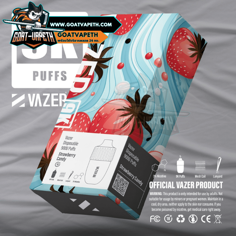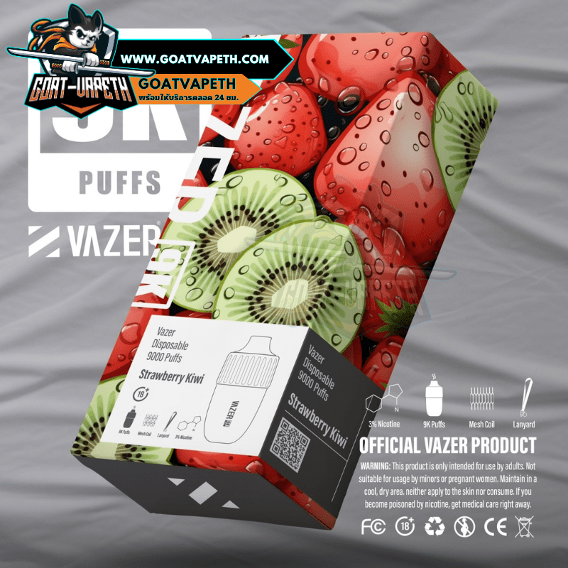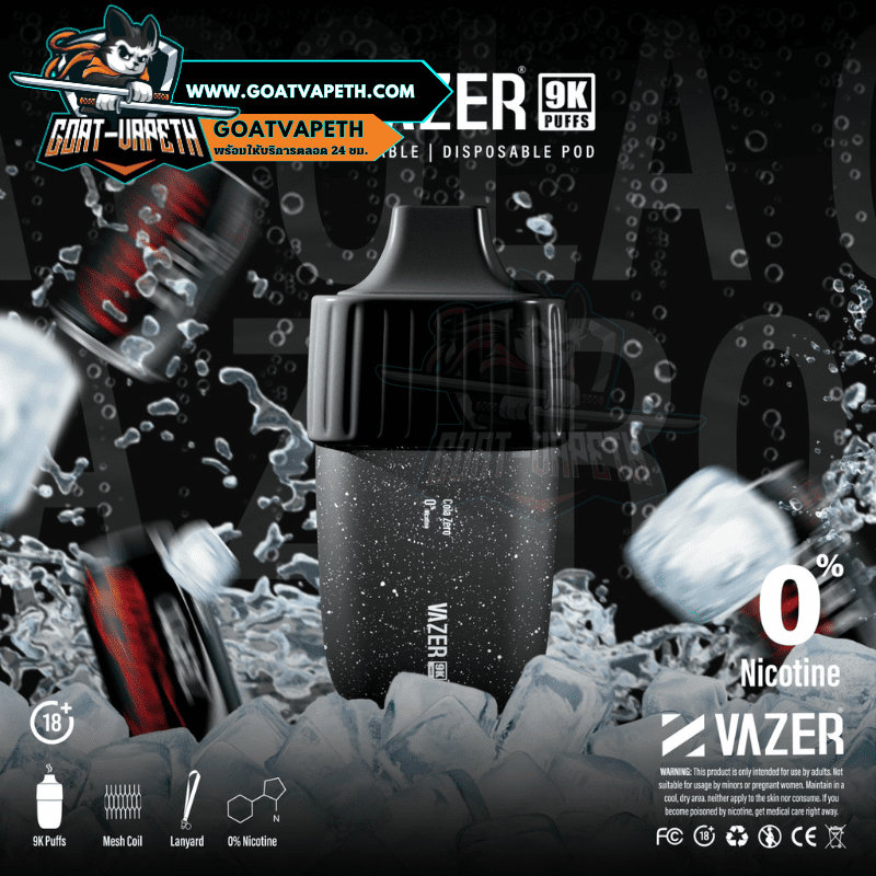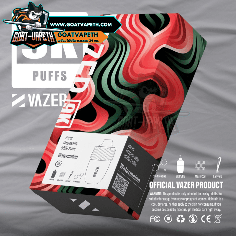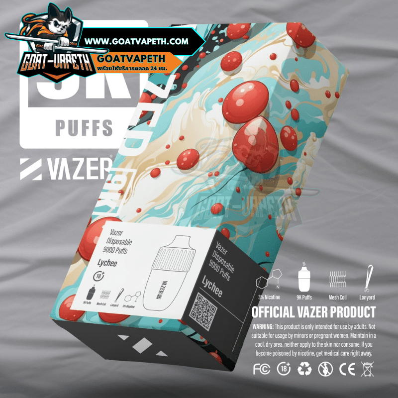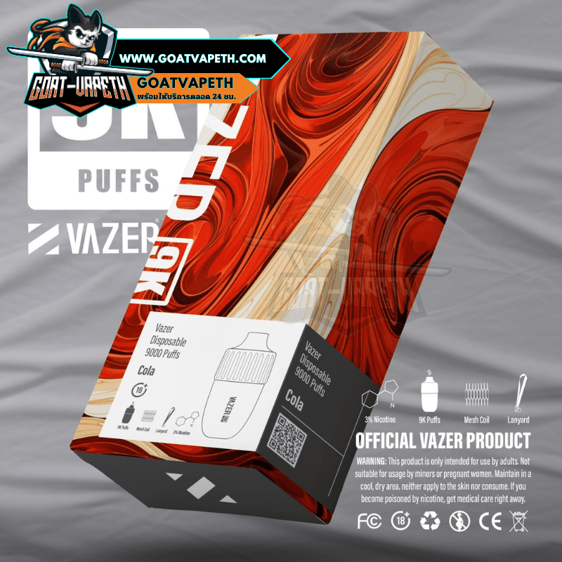 VAZER 9000 PUFFS พอตใช้แล้วทิ้งตัวใหม่ล่าสุดจากแบรนด์ VAZER สู่ทางเลือกใหม่สำหรับผู้ที่มีความต้องการที่เปลี่ยนแนวการสูบใหม่ VAZER 9000 คำ รุ่นใหม่ล่าสุดสูบได้ทั้งหมด 9000 คำ เป็นแบบขดลวดตาข่าย 1.0โอห์ม ลวดตาข่ายจะช่วยทำให้รสชาติน้ำยาหอมหวานอร่อยทุกคำและทำความร้อนได้เร็วมากขึ้นยิ่งไปกว่านั้นยังทำให้ควันเยอะอีกด้วย VAZER 9000 คำ มาพร้อมกับแบตเตอรี่ในตัวขนาด 600mAh ที่สามารถชาร์จแบตเตอรี่ได้ นิโคติน 30mg มีให้เลือกมากถึง 14 รสชาติ และความพิเศษของตัว VAZER 9000 คำ มาพร้อมกับสายสายคล้องคอ ดีไซน์สวยไม่ซ้ำแบรนด์อื่นอีกด้วย