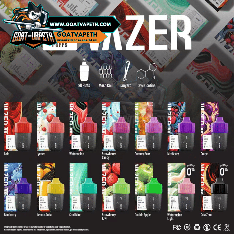 VAZER 9000 คำ มีให้เลือกทั้งหมด 14 รสชาติ