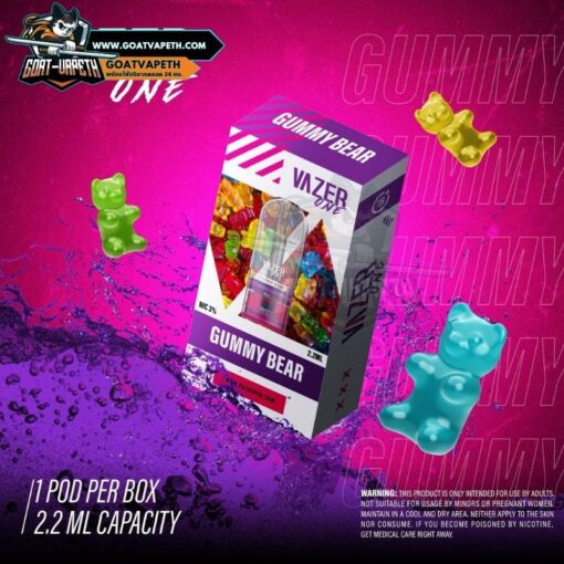 หัวพอต VAZER ONE GUMMY BEAR กลิ่นขนมกัมมี่แบร์หรือเยลลี่หมีหอมหวานสดชื่นกำลังดีสำหรับใครที่กำลังมองหาทางเลือกใหม่ๆในการสูบหรือต้องการอยากจะเปลี่ยน เป็นหัว VAZER ONE ถือว่าตอบโจทย์มาก ด้วยความที่เป็นหัวใส นิโคตินคุณภาพไม่แรงมากสูบง่ายสายชิวห้ามพลาดกลิ่นตรงปก