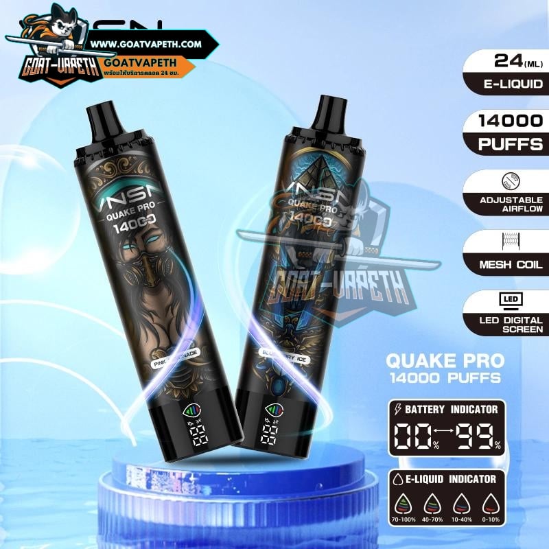 ป็นพอตใช้แล้วทิ้งตัวใหม่ล่าสุดจากแบรนด์ VNSN สู่ทางเลือกใหม่สำหรับนักสูบหน้าใหม่และหนักสูบมือโปรที่ต้องการเปลี่ยนฟิวในการสูบ เราของแนะนำ QUAKE PRO รุ่นใหม่ล่าสุด สูบได้ทั้งหมด 14000 คำ จุดเด่นใช้ลวดแบบ VNSN TECH 2.0 MESH COIL ที่จะช่วยทำให้รสชาติน้ำยาหอมหวานอร่อยทุกคำและทำความร้อนได้เร็วมากขึ้น ยิ่งไปกว่านั้นยังทำให้ควันเยอะอีกด้วย VNSN QUAKE PRO 14000
