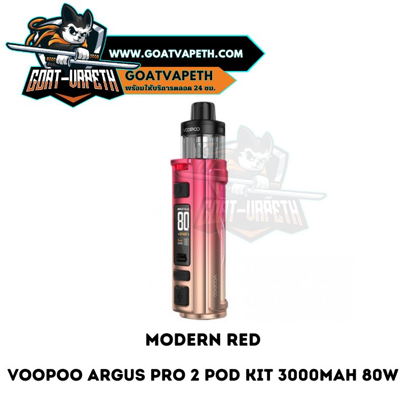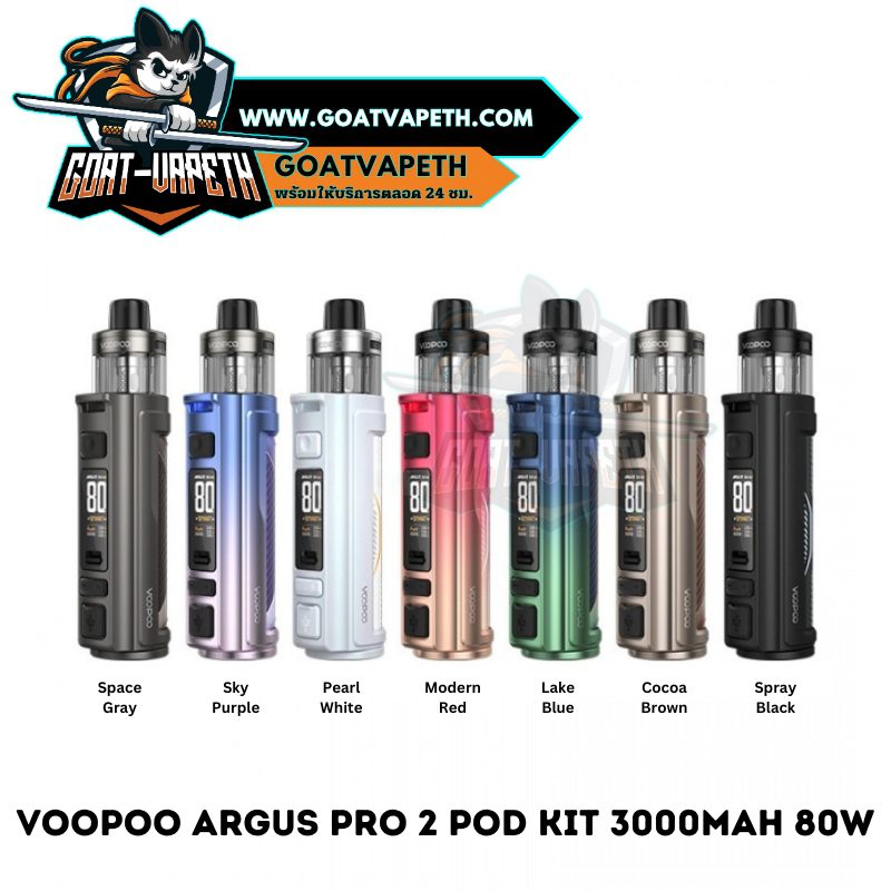 เป็นพอตไฟฟ้าจากแบรนด์ VOOPOO ในรุ่น ARGUS PRO 2 ได้ทำการออกสีใหม่ทั้งหมด 7 สี มีให้เลือกหลากหลายแบบ ARGUS PRO 2 มาพร้อมกับแบตเตอรี่ในตัวขนาดใหญ่ 3000mAh สามารถยิงไฟ 80W พอตไฟฟ้า ARGUS PRO 2 มาพร้อมกับหน้าจอ OLED ขนาด 0.96 นิ้ว สามารถใช้กับน้ำยาฟรีเบสและซอลนิคได้ ใช้งานรวมกับคอยล์ PNP X Series ได้ทุกค่าโอห์ม ที่สำคัญ ARGUS PRO 2 มาพร้อมกับ Turbo Mode